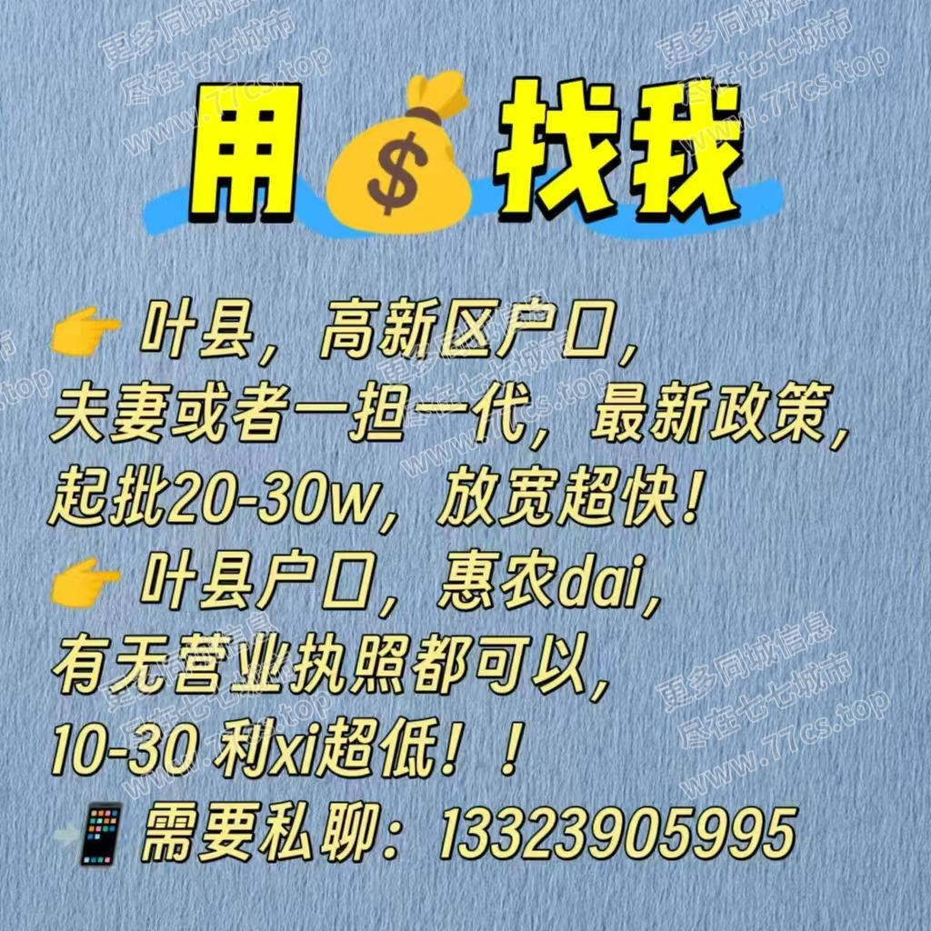叶县,高新区户口,夫妻或者一担一贷,最新政策,起批20-30万,放款超快