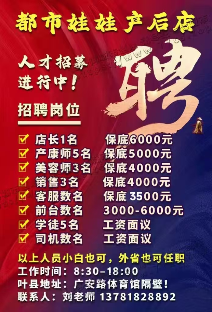 🔥 都市娃娃产后店招聘