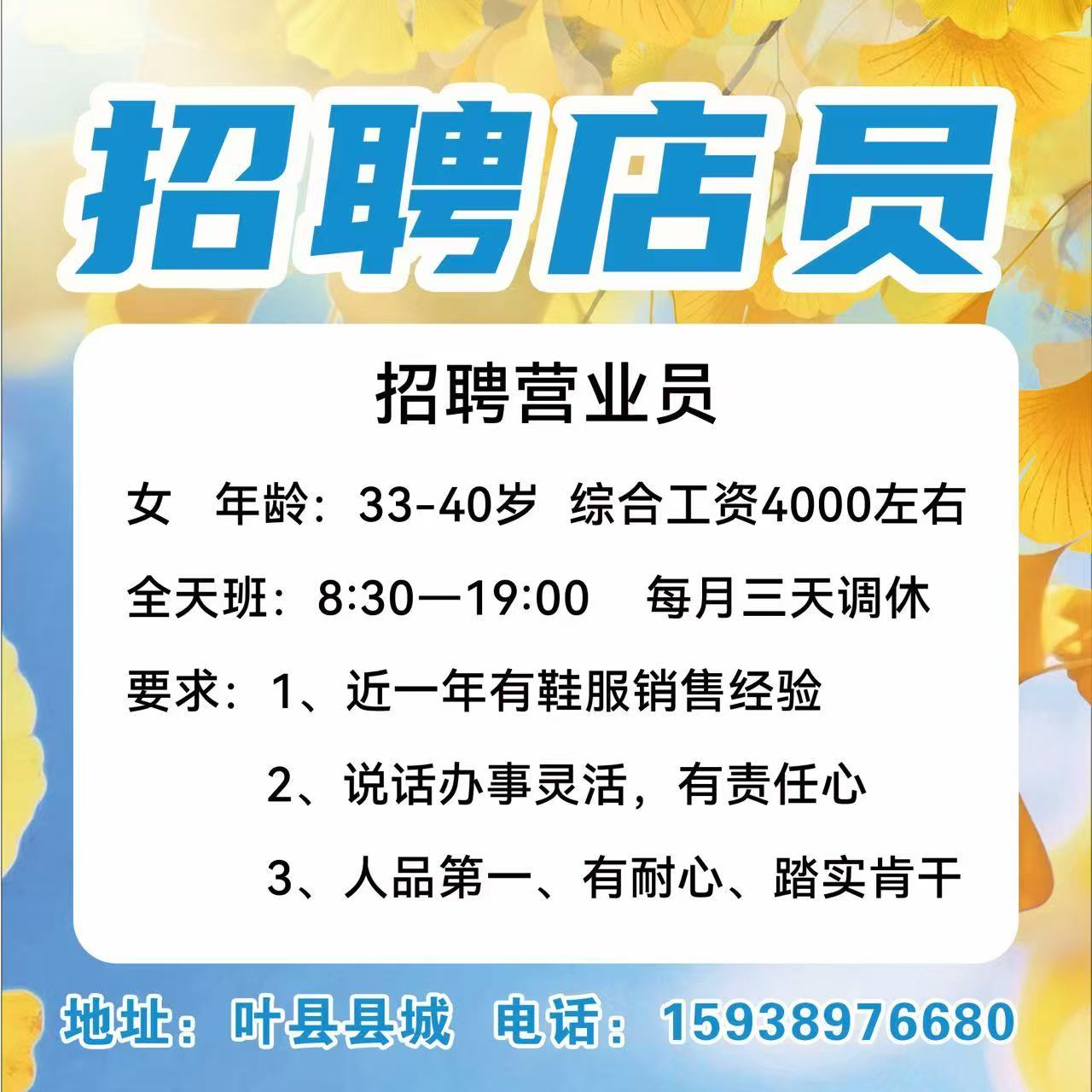 招聘店员(营业员)