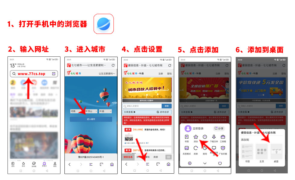 使用 手机浏览器 打开网址:http://www.77cs.top