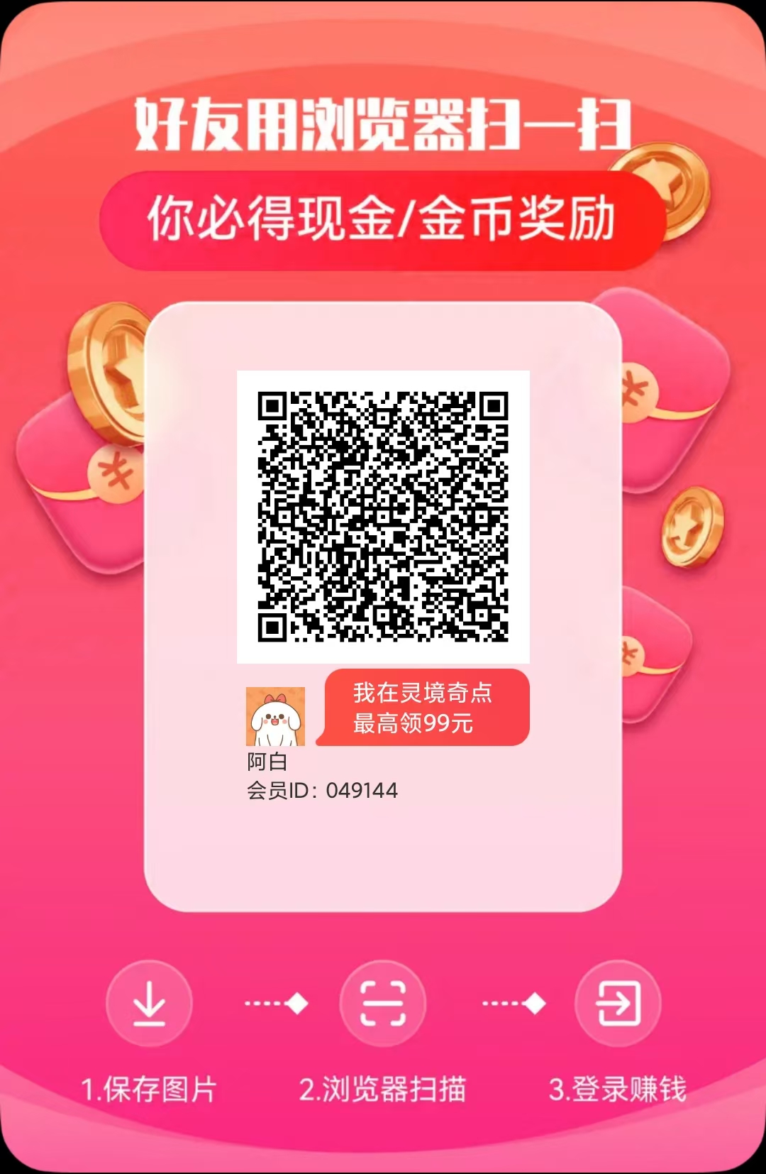 浏览器扫码下载注册后简单看几个广告,成功提现1元即可
